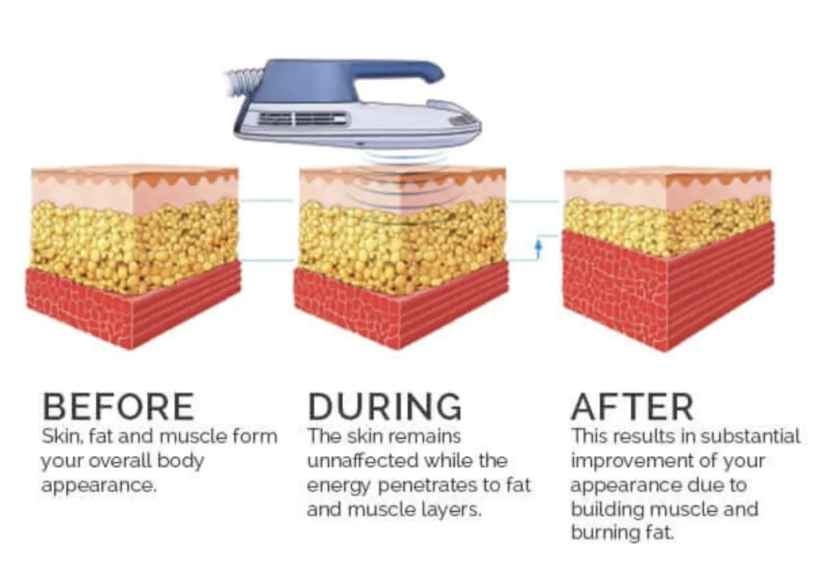 These deep contractions not only grow muscle fibers but also trigger fat cells to break down through a process called lipolysis, resulting in a leaner, more defined appearance over a series of treatments.